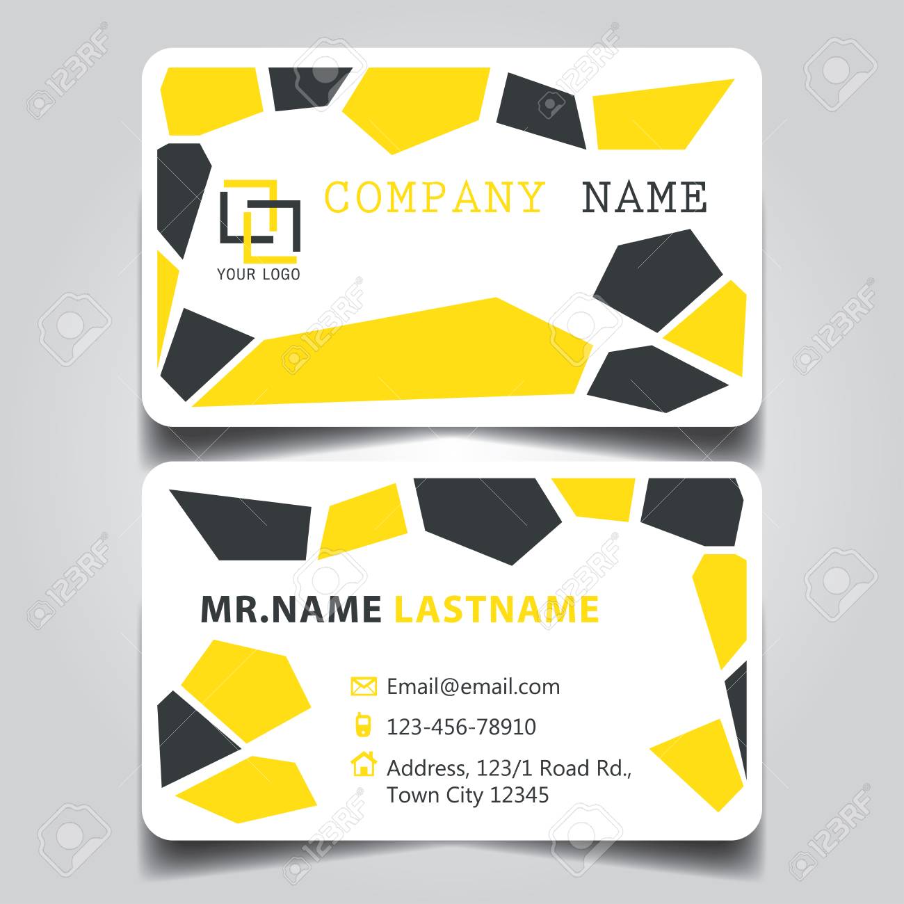 This modern business card design features a stylish colored and diagonal strip that makes the entire design more dynamic.